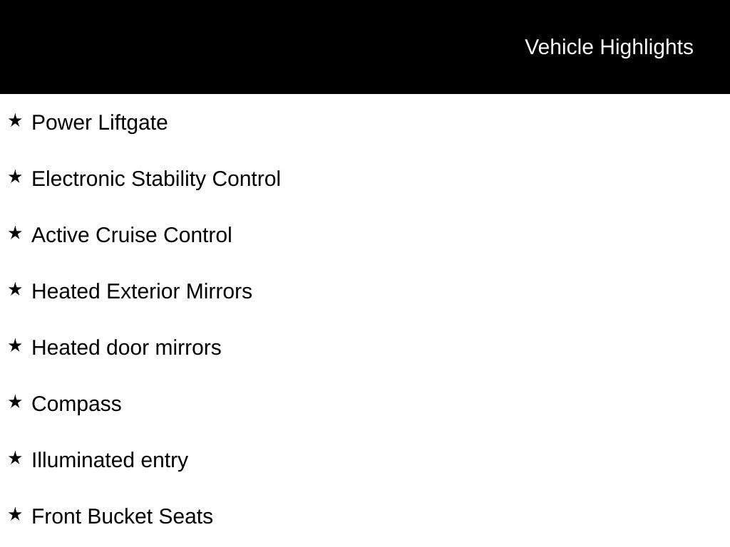 - Forward collision: Full Speed Forward Collision Warning Plus mitigation w/left turn assist