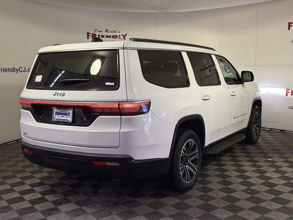 Check out all the standard equipment HD Trailer Tow Package (118 Mph Maximum Speed Calibration, Adjustable Roof Rail Crossbars, Blind Spot with Trailer Detection, Electronic Rear Limited Slip Differential, Removable Rear Tow Hooks, Selec-Speed Control, Trailer Brake Control, Trailer Hitch Zoom, Trailer Light Monitoring, Trailer Tire Pressure Monitoring System, Vapor Tow Hooks, and Wheels: 20 x 9 Machine Face Painted Aluminum), Premium Group I (3 Panel Sunroof, 3rd Row 60/40 Power Recline Seat, Auto Adjust in Reverse Exterior Mirrors, Auto Power Folding Exterior Mirrors, Auto Power Folding Mirrors, Auto-Dimming Exterior Driver Mirror, Cargo Cover, Exterior Mirrors Approach Lamps, Exterior Mirrors with Memory, Exterior Mirrors with Supplemental Signals, Heated Exterior Mirrors, Interior Rear Facing Camera, Luxury Front and Rear Floor Mats, P and P Park and Unpark Assist with Stop System, Reversible Carpet/Vinyl Cargo Mat, Side Distance Warning, and Surround View Camera System), Quick Order Package 29E Grand Wagoneer, 3rd row seats: bench, 4-Wheel Disc Brakes, 9 Speakers, ABS brakes, Air Conditioning, Alloy wheels, AM/FM radio: SiriusXM with 360L, Anti-whiplash front head restraints, Apple CarPlay/Android Auto, Audio memory, Auto High-beam Headlights, Auto-dimming door mirrors, Auto-dimming Rear-View mirror, Auto-leveling suspension, Automatic temperature control, Black Exterior Accents, Brake assist, Bumpers: body-color, Compass, Delay-off headlights, Driver door bin, Driver vanity mirror, Driver's Seat Mounted Armrest, Dual front impact airbags, Dual front side impact airbags, Electronic Stability Control, Emergency communication system: Jeep Connect, Exterior Parking Camera Rear, Four wheel independent suspension, Front anti-roll bar, Front Bucket Seats, Front Center Armrest w/Storage, Front dual zone A/C, Front fog lights, Front reading lights, Fully automatic headlights, Garage door transmitter, Heated door mirrors, Heated front seats, Heated steering wheel, Illuminated entry, Knee airbag, Low tire pressure warning, Manufacturer Statement of Origin, Memory seat, MyFlexCare Service Plan, Navigation System, Normal Duty Suspension, Occupant sensing airbag, Outside temperature display, Overhead airbag, Overhead console, Panic alarm, Passenger door bin, Passenger seat mounted armrest, Passenger vanity mirror, Power door mirrors, Power driver seat, Power Liftgate, Power passenger seat, Power steering, Power windows, Radio data system, Radio: Uconnect 5 Nav with 12.0 Display, Rain sensing wipers, Rear air conditioning, Rear anti-roll bar, Rear reading lights, Rear seat center armrest, Rear window defroster, Rear window wiper, Reclining 3rd row seat, Remote keyless entry, Security system, Speed control, Speed-sensing steering, Speed-Sensitive Wipers, Split folding rear seat, Steering wheel memory, Steering wheel mounted audio controls, Tachometer, Telescoping steering wheel, Tilt steering wheel, Traction control, Trip computer, Turn signal indicator mirrors, Variably intermittent wipers, Must qualify for FCA Employee Discount, Price includes: $1000 - 2026 National Stellantis Loyalty Bonus Cash .