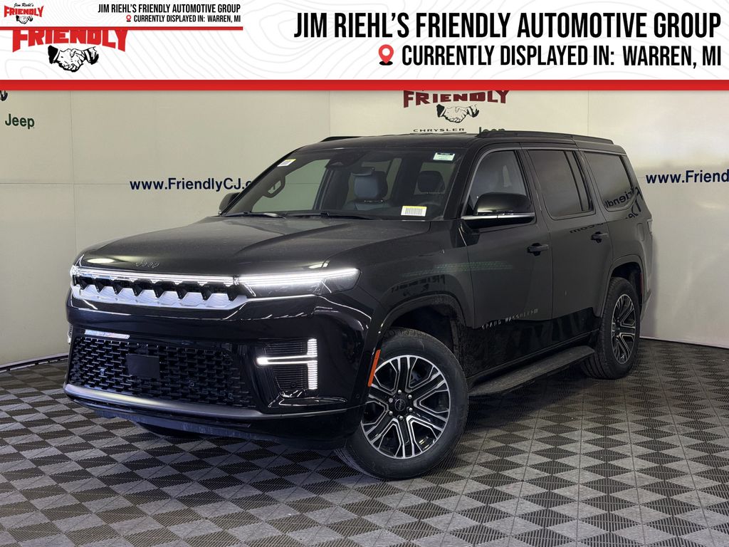 Check out all the standard equipment Quick Order Package 29E Grand Wagoneer, 118 Mph Maximum Speed Calibration, 3.55 Rear Axle Ratio, 3rd row seats: bench, 4-Wheel Disc Brakes, 9 Speakers, ABS brakes, Air Conditioning, Alloy wheels, AM/FM radio: SiriusXM with 360L, Anti-whiplash front head restraints, Apple CarPlay/Android Auto, Audio memory, Auto Adjust in Reverse Exterior Mirrors, Auto High-beam Headlights, Auto-dimming door mirrors, Auto-Dimming Exterior Driver Mirror, Auto-dimming Rear-View mirror, Auto-leveling suspension, Automatic temperature control, Black Exterior Accents, Brake assist, Bumpers: body-color, Compass, Delay-off headlights, Driver door bin, Driver vanity mirror, Driver's Seat Mounted Armrest, Dual front impact airbags, Dual front side impact airbags, Electronic Stability Control, Emergency communication system: Jeep Connect, Exterior Mirrors Approach Lamps, Exterior Mirrors with Memory, Exterior Mirrors with Supplemental Signals, Exterior Parking Camera Rear, Four wheel independent suspension, Front anti-roll bar, Front Bucket Seats, Front Center Armrest w/Storage, Front dual zone A/C, Front fog lights, Front reading lights, Fully automatic headlights, Garage door transmitter, Heated door mirrors, Heated Exterior Mirrors, Heated front seats, Heated steering wheel, Illuminated entry, Knee airbag, Low tire pressure warning, Memory seat, MyFlexCare Service Plan, Navigation System, Normal Duty Suspension, Occupant sensing airbag, Outside temperature display, Overhead airbag, Overhead console, Panic alarm, Passenger door bin, Passenger seat mounted armrest, Passenger vanity mirror, Power door mirrors, Power driver seat, Power Liftgate, Power passenger seat, Power steering, Power windows, Radio data system, Radio: Uconnect 5 Nav with 12.0 Display, Rain sensing wipers, Rear air conditioning, Rear anti-roll bar, Rear reading lights, Rear seat center armrest, Rear window defroster, Rear window wiper, Reclining 3rd row seat, Remote keyless entry, Security system, Speed control, Speed-sensing steering, Speed-Sensitive Wipers, Split folding rear seat, Steering wheel memory, Steering wheel mounted audio controls, Tachometer, Telescoping steering wheel, Tilt steering wheel, Traction control, Trip computer, Turn signal indicator mirrors, Variably intermittent wipers, Ventilated front seats, Voltmeter, and Wheels: 20 x 9 Machine Face Painted Aluminum. Must qualify for FCA Employee Discount, Price includes: $1000 - 2026 National Stellantis Loyalty Bonus Cash . Exp. 03/31/2026
