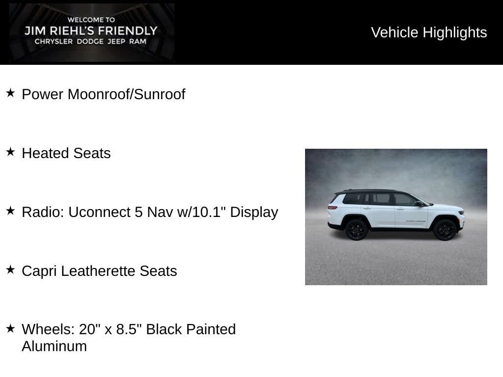 Power Moonroof/Sunroof, Heated Seats, Capri Leatherette Seats, Radio: Uconnect 5 Nav w/10.1 Display, Wheels: 20 x 8.5 Black Painted Aluminum.