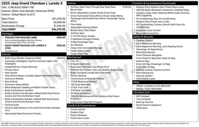 2025 Jeep Grand Cherokee L Laredo Baltic Gray Metallic Clearcoat 4WD 3.6L V6 24V VVT 8-Speed Automatic