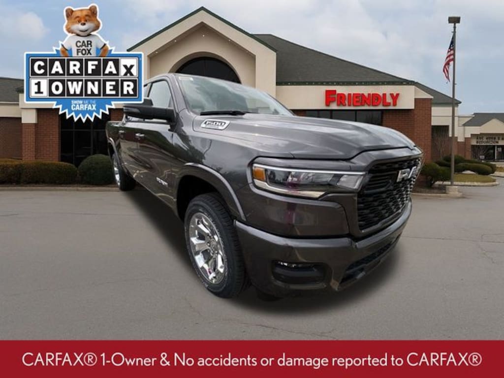 Check out all the standard equipment Big Horn Level 1 Equipment Group (115V Auxiliary Power Outlet, 2nd Row In Floor Storage Bins, 400W Inverter, Auto Power-Folding Mirrors, Auto-Dimming Exterior Driver Mirror, Auto-Dimming Rear-View Mirror, Black Exterior Mirrors, Black Premium Power Mirrors, Convex Wide-Angle Exterior Mirror Insert, Exterior Mirrors Courtesy Lamps, Exterior Mirrors w/Heating Element, Exterior Mirrors w/Supplemental Signals, Glove Box Lamp, Heated Front Seats, Heated Steering Wheel, Leather Wrapped Steering Wheel, Power 2-Way Driver Lumbar Adjust, Power Adjust 8-Way Driver Seat, Power Adjustable Pedals, Rear Power Sliding Window, Rear Window Defroster, Steering Wheel Mounted Audio Controls, Sun Visors w/Illuminated Vanity Mirrors, and Universal Garage Door Opener), Quick Order Package 23Z Big Horn (Big Horn Badge), Sport Appearance Package (3 Rear Seat Head Restraints, 4 Way Front Headrests, Black Interior Accents, Body Color Door Handles, Body Color Front Bumper, Body Color Rear Bumper w/Step Pads, Body Color Tailgate Handle, Bucket Seats, Deluxe Cloth Bucket Seats, Front Seat Back Map Pockets, Full Length Floor Console, Grille Surround 1 Body Color Texture 1 Black, Manual Adjust 4-Way Front Passenger Seat, RAM Grille Badge - Chrome, Rear 60/40 Folding Seat, and Rear Center Armrest), 3.21 Rear Axle Ratio, 4-Wheel Disc Brakes, 4G LTE Wi-Fi Hot Spot, 6 Speakers, ABS brakes, Air Conditioning, Alloy wheels, AM/FM radio, Apple CarPlay/Android Auto, Auto High-beam Headlights, Brake assist, Bumpers: chrome, Cloth Bench Seat, Compass, Connectivity - US/Canada, Delay-off headlights, Driver door bin, Dual front impact airbags, Dual front side impact airbags, Electronic Stability Control, Front anti-roll bar, Front Center Armrest w/Storage, Front fog lights, Front reading lights, Front wheel independent suspension, Fully automatic headlights, GPS Antenna Input, Heated door mirrors, Illuminated entry, Integrated Voice Command w/Bluetooth, Low tire pressure warning, Manual Folding Exterior Mirrors, Manufacturer's Statement of Origin, Occupant sensing airbag, Outside temperature display, Overhead airbag, Overhead console, Panic alarm, ParkView Rear Back-Up Camera, Passenger door bin, Passenger vanity mirror, Power door mirrors, Power steering, Power windows, Radio data system, Radio: Uconnect 5 W w/8.4" Display, Rear anti-roll bar, Rear seat center armrest, Rear step bumper, Remote keyless entry, Speed control, Split folding rear seat, Supplier Part Tracking (J-1), Tachometer, Telescoping steering wheel, Tilt steering wheel, Traction control, Trip computer, USB Host Flip, Variably intermittent wipers, Voltmeter, Wheels: 18" x 8" Cast-Aluminum Painted, and Wheels: 20" x 9" Aluminum Chrome Clad (WRK) Price includes: $1250 - 2025 Midwest BC SFS Bonus Cash . Exp. 01/05/2026 $2000 - 2025 Midwest BC SFS Retail Loyalty Bonus Cash. Exp. 01/05/2026 10% Msrp - 2025 National 10% Below MSRP . Exp. 01/05/2026