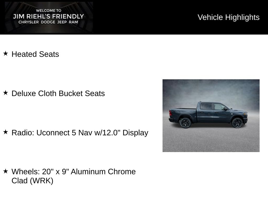 Heated Seats, Deluxe Cloth Bucket Seats, Radio: Uconnect 5 Nav w/12.0 Display, Wheels: 20 x 9 Aluminum Chrome Clad (WRK).