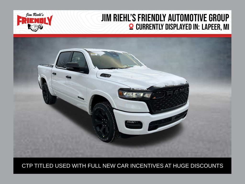 CTP Courtesy Transportation Program Titled used with full new car incentives at huge discounts. This Vehicle is currently located in Lapeer. Welcome to Jim Riehl's Friendly Chrysler Dodge Jeep Ram of Lapeer. Just North of FCA Headquarters on Lapeer Road South of I69. We are delivering vehicles Daily. To your home or office. Please call us today 810.664.2900.