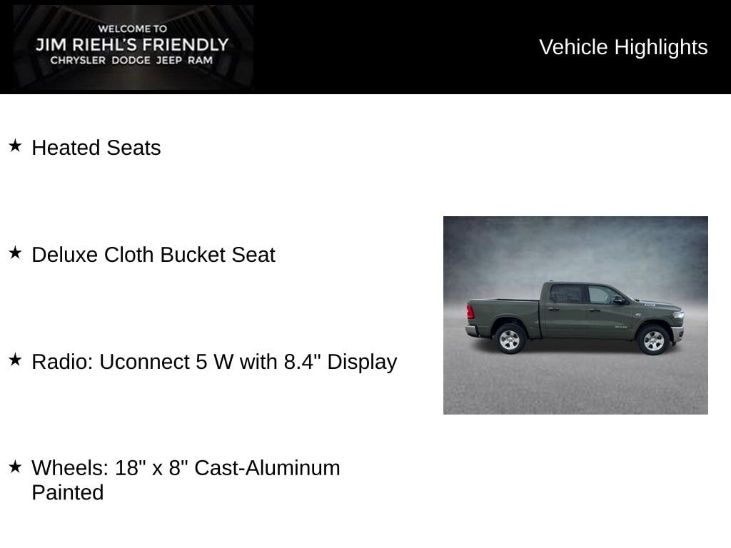 Heated Seats, Deluxe Cloth Bucket Seat, Radio: Uconnect 5 W with 8.4 Display, Wheels: 18 x 8 Cast-Aluminum Painted.