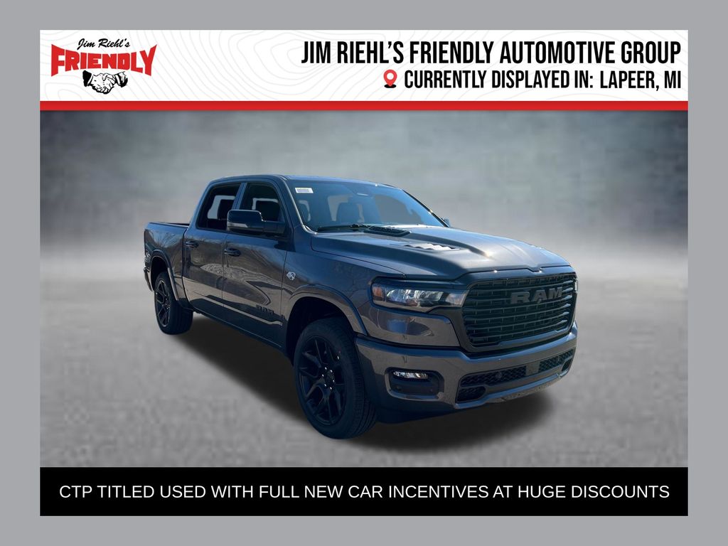 CTP Courtesy Transportation Program Titled used with full new car incentives at huge discounts. This Vehicle is currently located in Lapeer. Welcome to Jim Riehl's Friendly Chrysler Dodge Jeep Ram of Lapeer. Just North of FCA Headquarters on Lapeer Road South of I69. We are delivering vehicles Daily. To your home or office. Please call us today 810.664.2900. Sale Prices are based on incentives available in Lapeer County. Residency restrictions apply. Sale price includes Stellantis loyalty, or conquest offers when applicable to Stellantis offers.