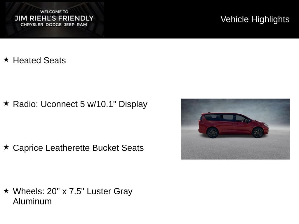 Heated Seats, Caprice Leatherette Bucket Seats, Radio: Uconnect 5 w/10.1 Display, Wheels: 20 x 7.5 Luster Gray Aluminum.