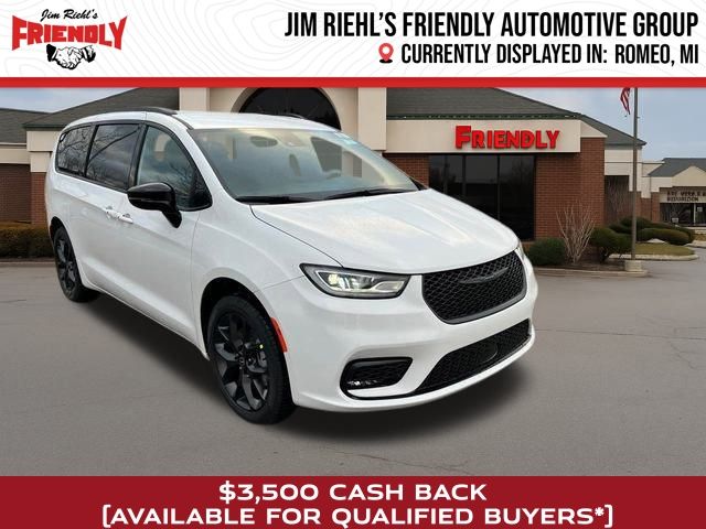 Check out all the standard equipment Quick Order Package 27L, S Appearance Package (Anodized Ink Badging, Black Day Light Opening Moldings, Black Stow 'N Place Roof Rack, Caprice Leatherette with S Logo, Piano Black Interior Accents, Premium Fascia Upper/Lower Grille with Black Surround, Premium Rear Fascia Black, S Badge, and Wheels: 20" x 7.5" S-Model Aluminum Design 1), 10.1" Touchscreen Display, 18" x 7.5" Painted Aluminum Wheels, 3.73 Axle Ratio, 3rd row seats: split-bench, 4-Wheel Disc Brakes, 4G LTE Wi-Fi Hot Spot, 6 Speakers, ABS brakes, Air Conditioning, Alloy wheels, AM/FM radio: SiriusXM, Apple CarPlay, Apple CarPlay/Android Auto, Auto-dimming Rear-View mirror, Automatic temperature control, AWD Suspension, Black Seats, Brake assist, Bumpers: body-color, Caprice Leatherette Bucket Seats, Compass, Connectivity - US/Canada, Delay-off headlights, Disassociated Touchscreen Display, Driver door bin, Driver vanity mirror, Driver's Seat Mounted Armrest, Dual front impact airbags, Dual front side impact airbags, Electronic Stability Control, Emergency communication system: Chrysler Connect, For Details, Visit DriveUconnect.com, Four wheel independent suspension, Front anti-roll bar, Front Bucket Seats, Front dual zone A/C, Front fog lights, Front reading lights, Fully automatic headlights, Garage door transmitter, Google Android Auto, GPS Antenna Input, Heated door mirrors, Heated front seats, Heated steering wheel, Illuminated entry, Integrated Active Noise Cancellation, Integrated Center Stack Radio, Knee airbag, Low tire pressure warning, Memory seat, MyFlexCare Service Plan, Occupant sensing airbag, Outside temperature display, Overhead airbag, Overhead console, Panic alarm, ParkView Rear Back-Up Camera, Passenger door bin, Passenger seat mounted armrest, Passenger vanity mirror, Power door mirrors, Power driver seat, Power Liftgate, Power steering, Power windows, Radio data system, Radio: Uconnect 5 with 10.1" Display, Rain sensing wipers, Rear air conditioning, Rear reading lights, Rear window defroster, Rear window wiper, Reclining 3rd row seat, Remote keyless entry, Security system, Speed control, Split folding rear seat, Spoiler, Steering wheel mounted audio controls, Tachometer, Telescoping steering wheel, Tilt steering wheel, Traction control, Trip computer, Turn signal indicator mirrors, USB Host Flip, Variably intermittent wipers, and VoltmeteR. Price includes: $2750 - 2026 National Retail Bonus Cash . Exp. 02/02/2026 $750 - 2026 National Bonus Cash . Exp. 02/02/2026