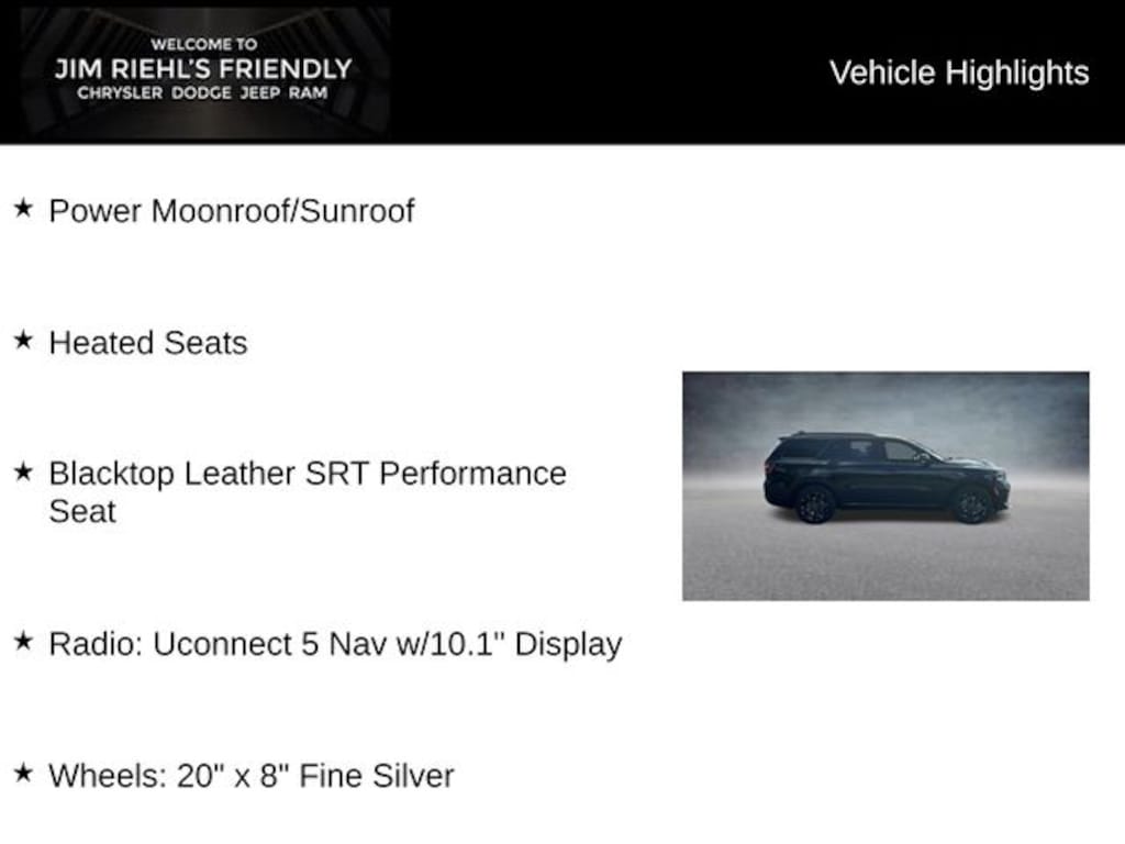 Power Moonroof/Sunroof, Heated Seats, Blacktop Leather SRT Performance Seat, AWD, Radio: Uconnect 5 Nav w/10.1 Display, Wheels: 20 x 8 Fine Silver.