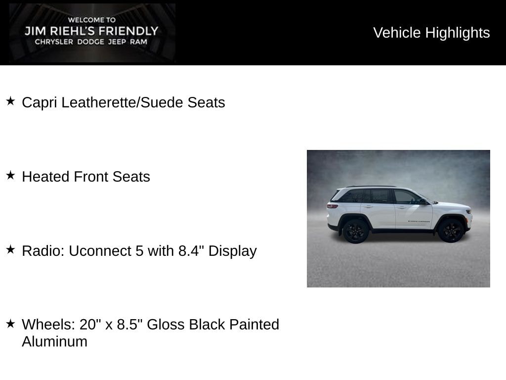 Capri Leatherette/Suede Seats, Heated Front Seats, 4WD, Radio: Uconnect 5 with 8.4 Display, Wheels: 20 x 8.5 Gloss Black Painted Aluminum.