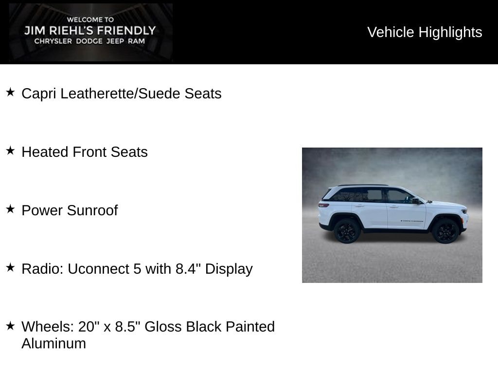 Capri Leatherette/Suede Seats, Heated Front Seats, Power Sunroof, 4WD, Radio: Uconnect 5 with 8.4 Display, Wheels: 20 x 8.5 Gloss Black Painted Aluminum.