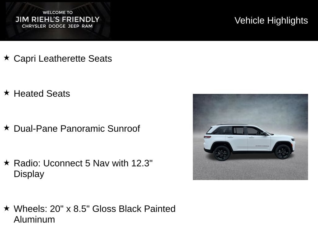 Capri Leatherette Seats, Heated Seats, Dual-Pane Panoramic Sunroof, 4WD, Radio: Uconnect 5 Nav with 12.3 Display, Wheels: 20 x 8.5 Gloss Black Painted Aluminum.