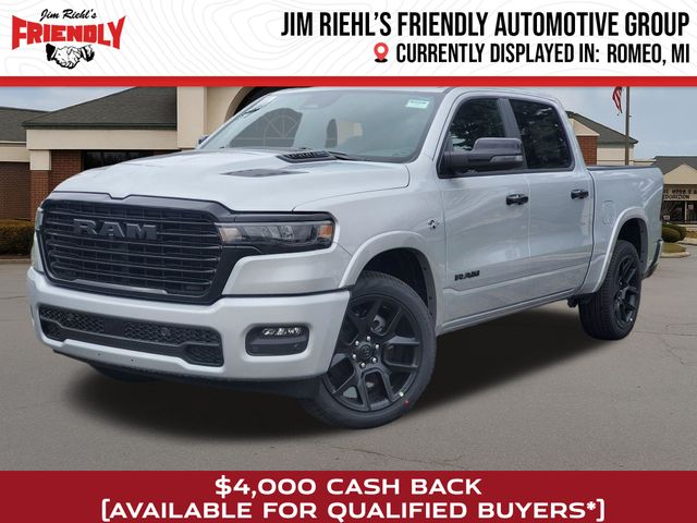 Check out all the standard equipment Laramie Level 1 Equipment Group (Rain Sensitive Windshield Wipers and Remote Tailgate Release), Night Edition (Accent Color Door Handles, Accent Color Premium Power Mirrors, Accent Color Tailgate Handle, Anti-Spin Differential Rear Axle, Auto Power-Folding Mirrors, Auto-Dimming Exterior Driver Mirror, Black Exterior Truck Badging, Black Headlamp Bezels, Black Interior Accents, Black Painted Exterior Mirrors Caps, Black Tail Lamp Bezels, Body Color Front Bumper, Body Color Rear Bumper with Step Pads, Convex Wide-Angle Exterior Mirror Insert, Dual Exhaust with Black Tips, Exterior Mirrors Approach Lamps, Exterior Mirrors Courtesy Lamps, Exterior Mirrors with Heating Element, Exterior Mirrors with Memory, Exterior Mirrors with Supplemental Signals, Grille Surround 3 Black Texture 2 Black, Pirelli Brand Tires, Proximity Approach/Departure Lamps, RAM Grille Badge - Black, Sport Performance Hood, and Wheels: 22" x 9" Forged Aluminum), Quick Order Package 27H Laramie, 10 Speakers, 4-Wheel Disc Brakes, 4G LTE Wi-Fi Hot Spot, ABS brakes, Active Noise Control System, Adjustable pedals, Air Conditioning, Alloy wheels, AM/FM radio: SiriusXM with 360L, Apple CarPlay/Android Auto, Audio memory, Auto High-beam Headlights, Auto-dimming door mirrors, Auto-dimming Rear-View mirror, Automatic temperature control, Brake assist, Bumpers: chrome, Chrome Exterior Mirrors, Compass, Connected Travel and Traffic Services, Connectivity - US/Canada, Delay-off headlights, Driver door bin, Driver vanity mirror, Dual front impact airbags, Dual front side impact airbags, Electronic Stability Control, Front anti-roll bar, Front Bucket Seats, Front Center Armrest w/Storage, Front dual zone A/C, Front fog lights, Front reading lights, Front wheel independent suspension, Fully automatic headlights, Garage door transmitter, GPS Navigation, Heated door mirrors, Heated front seats, Heated rear seats, Heated steering wheel, Illuminated entry, Integrated Center Stack Radio, Integrated Voice Command with Bluetooth, Leather steering wheel, Leather Trimmed Bucket Seats, Low tire pressure warning, Manufacturer's Statement of Origin, Memory seat, MOPAR Front and Rear Rubber Floor Mats, MyFlexCare Service Plan, Navigation System, Occupant sensing airbag, Off-Road Information Pages, Outside temperature display, Overhead airbag, Overhead console, Panic alarm, ParkView Rear Back-Up Camera, Passenger door bin, Passenger vanity mirror, Pedal memory, Power door mirrors, Power driver seat, Power passenger seat, Power steering, Power windows, Radio data system, Radio: Uconnect 5 Navigation with 12.0" Display, RAM Grille Badge - Chrome, Rear anti-roll bar, Rear reading lights, Rear seat center armrest, Rear step bumper, Remote keyless entry, Security system, SiriusXM Radio Service, SiriusXM with 360L, Speed control, Split folding rear sea Price includes: $1500 - 2026 Great Lakes BC Select Inventory Bonus Cash . Exp. 04/30/2026 $2000 - 2026 National SFS Lease Loyalty Bonus Cash . Exp. 04/30/2026 $500 - 2026 Great Lakes BC Bonus C