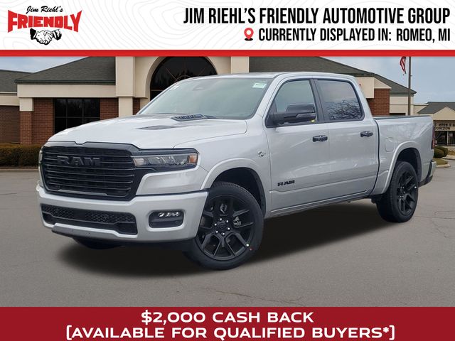 Check out all the standard equipment Laramie Level 2 Equipment Group (14.4" Touchscreen Display, 4G LTE Wi-Fi Hot Spot, Cluster 12" TFT Color Display, Connected Travel and Traffic Services, Connectivity - US/Canada, Front Passenger Interactive Display, GPS Navigation, Harman/Kardon 19 Speaker Premium Sound, Integrated Center Stack Radio, Integrated Voice Command with Bluetooth, Power Tailgate, Radio: Uconnect 5 Nav with 14.4" Display, Rain Sensitive Windshield Wipers, SiriusXM Radio Service, SiriusXM with 360L, and USB Host Flip), Night Edition (Accent Color Door Handles, Accent Color Premium Power Mirrors, Accent Color Tailgate Handle, Anti-Spin Differential Rear Axle, Auto Power-Folding Mirrors, Auto-Dimming Exterior Driver Mirror, Black Exterior Truck Badging, Black Headlamp Bezels, Black Interior Accents, Black Painted Exterior Mirrors Caps, Black Tail Lamp Bezels, Body Color Front Bumper, Body Color Rear Bumper with Step Pads, Convex Wide-Angle Exterior Mirror Insert, Dual Exhaust with Black Tips, Exterior Mirrors Approach Lamps, Exterior Mirrors Courtesy Lamps, Exterior Mirrors with Heating Element, Exterior Mirrors with Memory, Exterior Mirrors with Supplemental Signals, Grille Surround 3 Black Texture 2 Black, Pirelli Brand Tires, Proximity Approach/Departure Lamps, RAM Grille Badge - Black, Sport Performance Hood, and Wheels: 22" x 9" Forged Aluminum), Quick Order Package 27H Laramie, 10 Speakers, 4-Wheel Disc Brakes, ABS brakes, Active Noise Control System, Adjustable pedals, Air Conditioning, Alloy wheels, AM/FM radio: SiriusXM with 360L, Apple CarPlay/Android Auto, Audio memory, Auto High-beam Headlights, Auto-dimming door mirrors, Auto-dimming Rear-View mirror, Automatic temperature control, Brake assist, Bumpers: chrome, Chrome Exterior Mirrors, Compass, Delay-off headlights, Driver door bin, Driver vanity mirror, Dual front impact airbags, Dual front side impact airbags, Electronic Stability Control, Front anti-roll bar, Front Bucket Seats, Front Center Armrest w/Storage, Front dual zone A/C, Front fog lights, Front reading lights, Front wheel independent suspension, Fully automatic headlights, Garage door transmitter, Heated door mirrors, Heated front seats, Heated rear seats, Heated steering wheel, Illuminated entry, Leather steering wheel, Leather Trimmed Bucket Seats, Low tire pressure warning, Manufacturer's Statement of Origin, Memory seat, MOPAR Front and Rear Rubber Floor Mats, MyFlexCare Service Plan, Navigation System, Occupant sensing airbag, Off-Road Information Pages, Outside temperature display, Overhead airbag, Overhead console, Panic alarm, ParkView Rear Back-Up Camera, Passenger door bin, Passenger vanity mirror, Pedal memory, Power door mirrors, Power driver seat, Power passenger seat, Power steering, Power windows, Radio data system, Radio: Uconnect 5 Navigation with 12.0" Display, RAM Grille Badge - Chrome, Rear anti-roll bar, Rear reading lights, Rear seat center armrest, Rear step bumper, Remote keyless entry, Price includes: $2000 - 2026 National SFS Lease Loyalty Bonus C