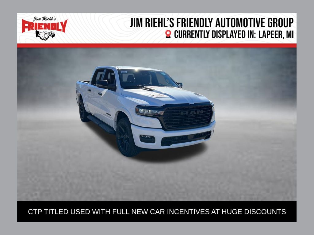 CTP Courtesy Transportation Program Titled used with full new car incentives at huge discounts. This Vehicle is currently located in Lapeer. Welcome to Jim Riehl's Friendly Chrysler Dodge Jeep Ram of Lapeer. Just North of FCA Headquarters on Lapeer Road South of I69. We are delivering vehicles Daily. To your home or office. Please call us today 810.664.2900.