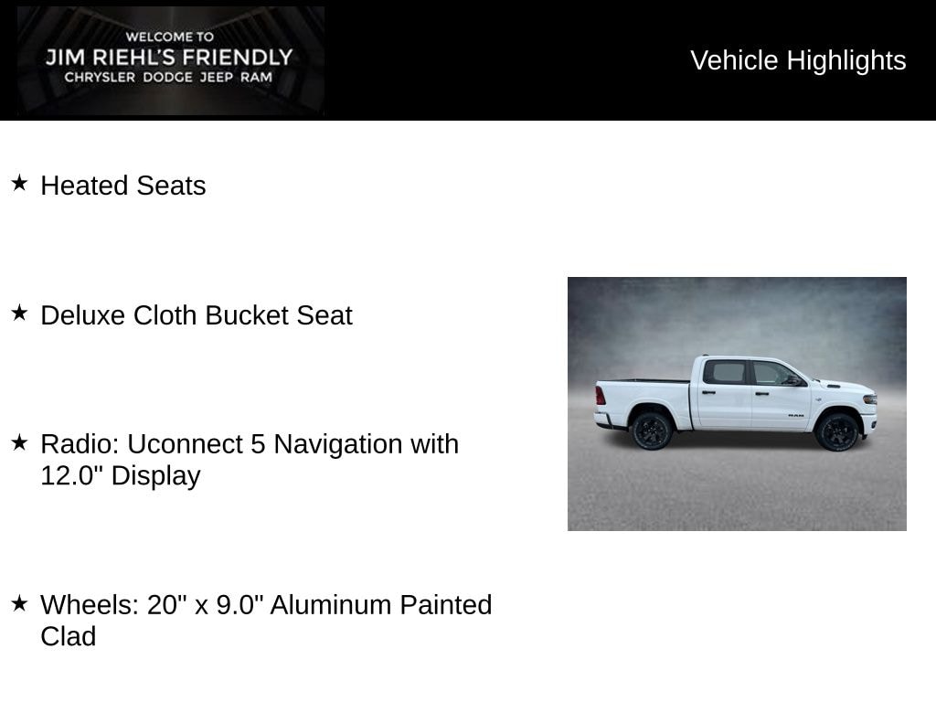 Heated Seats, Deluxe Cloth Bucket Seat, Radio: Uconnect 5 Navigation with 12.0 Display, Wheels: 20 x 9.0 Aluminum Painted Clad.