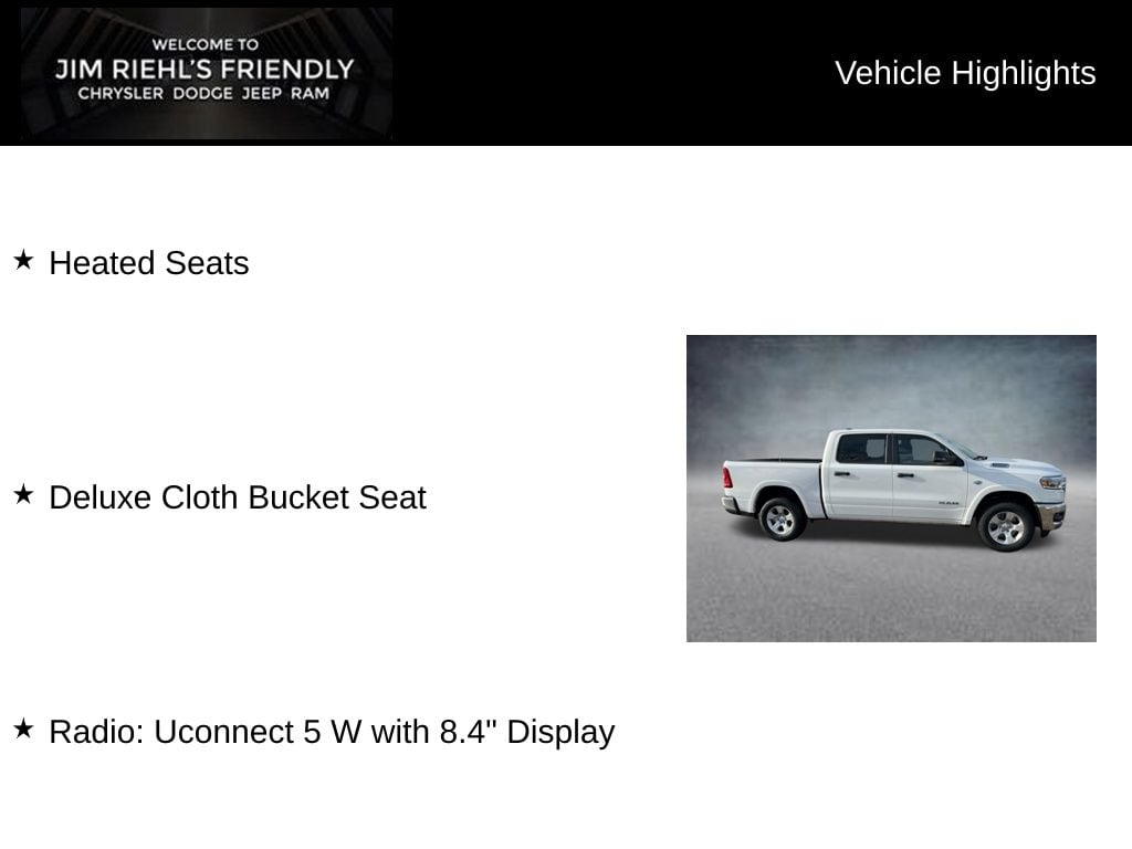 Heated Seats, Deluxe Cloth Bucket Seat, Radio: Uconnect 5 W with 8.4 Display.