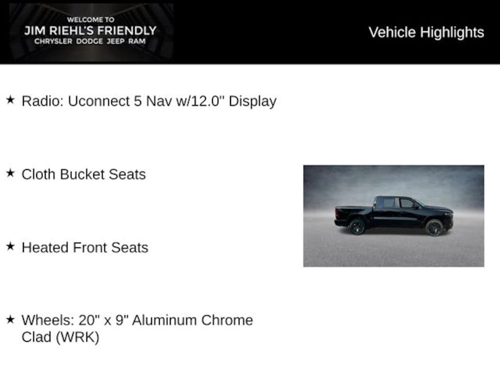 Cloth Bucket Seats, Heated Front Seats, Radio: Uconnect 5 Nav w/12.0 Display, Wheels: 20 x 9 Aluminum Chrome Clad (WRK).