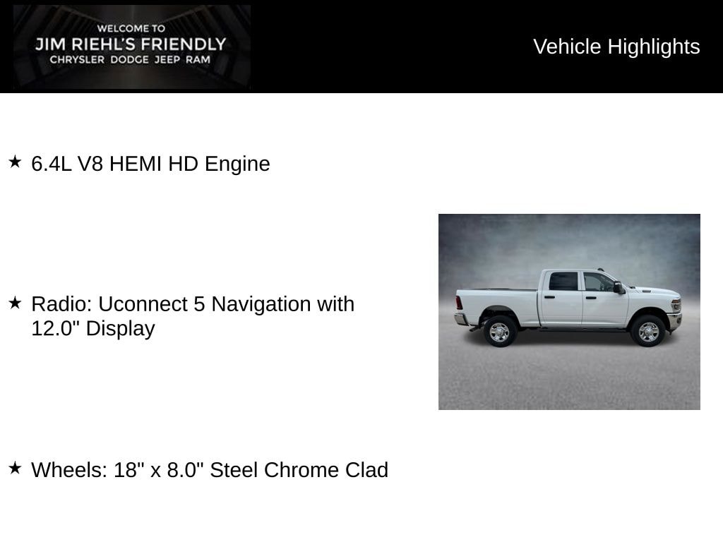 6.4L V8 HEMI HD Engine, Radio: Uconnect 5 Navigation with 12.0 Display, Wheels: 18 x 8.0 Steel Chrome Clad.