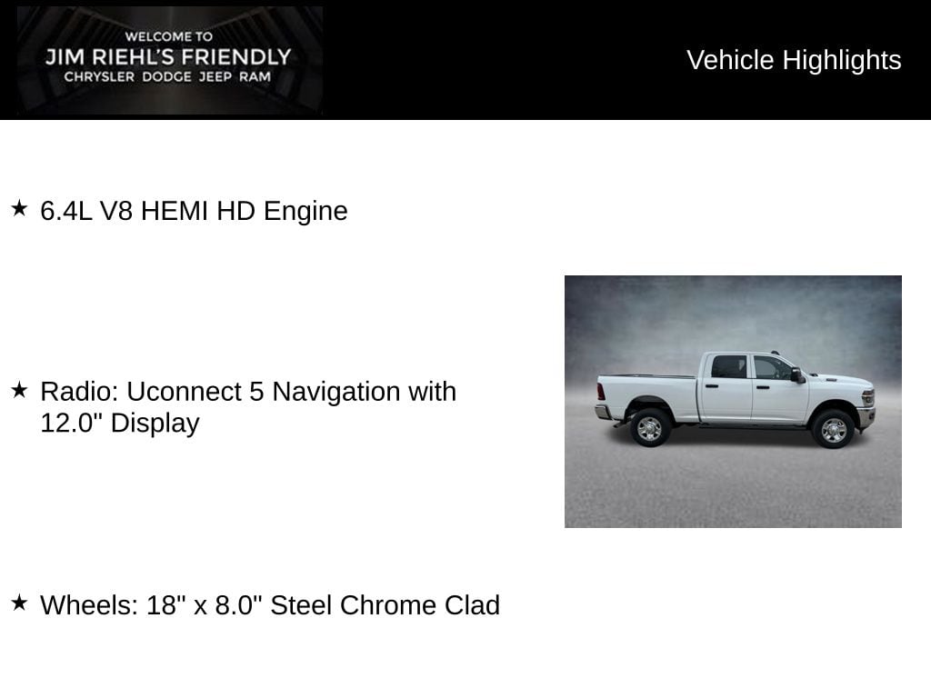 6.4L V8 HEMI HD Engine, Radio: Uconnect 5 Navigation with 12.0 Display, Wheels: 18 x 8.0 Steel Chrome Clad.