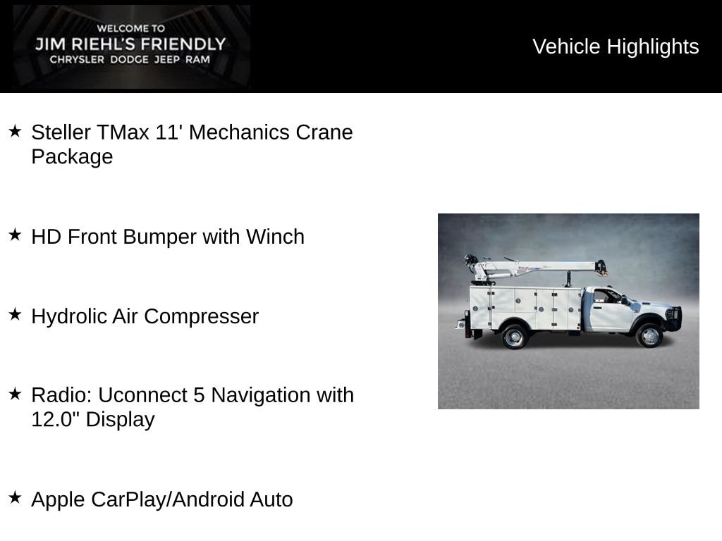 Steller TMax 11' Mechanics Crane Package, HD Front Bumper with Winch, Hydrolic Air Compresser, Apple CarPlay/Android Auto, Radio: Uconnect 5 Navigation with 12.0 Display.