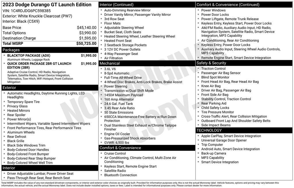 2023 Dodge Durango GT White Knuckle Clearcoat 3.6L V6 24V VVT 8-Speed Automatic AWD