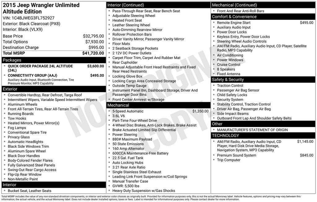2015 Jeep Wrangler Unlimited Sahara Altitude Black Clearcoat 3.6L V6 24V VVT 5-Speed Automatic 4WD