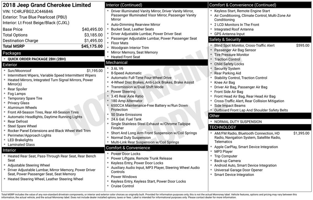 2018 Jeep Grand Cherokee Limited True Blue Pearlcoat 3.6L V6 24V VVT 8-Speed Automatic 4WD
