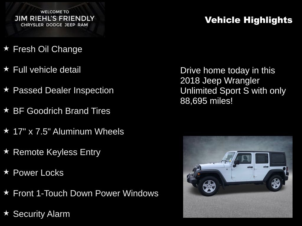 2018 Jeep Wrangler JK Unlimited Sport Bright White Clearcoat 3.6L V6 24V VVT 5-Speed Automatic 4WD