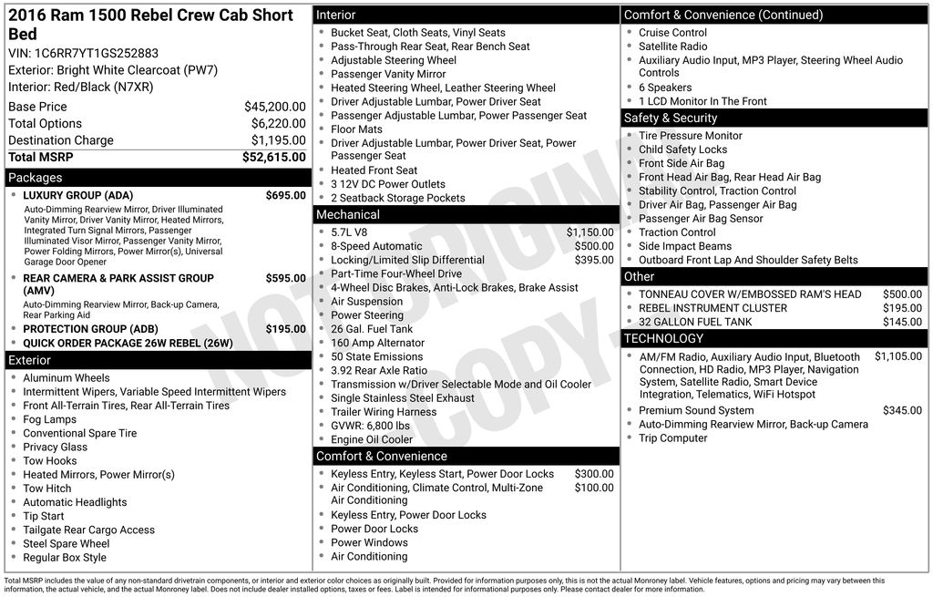 2016 Ram 1500 Rebel Bright White Clearcoat HEMI 5.7L V8 Multi Displacement VVT 8-Speed Automatic 4WD