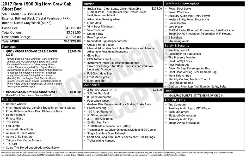 2017 Ram 1500 Big Horn Brilliant Black Crystal Pearlcoat 3.6L V6 24V VVT 8-Speed Automatic 4WD