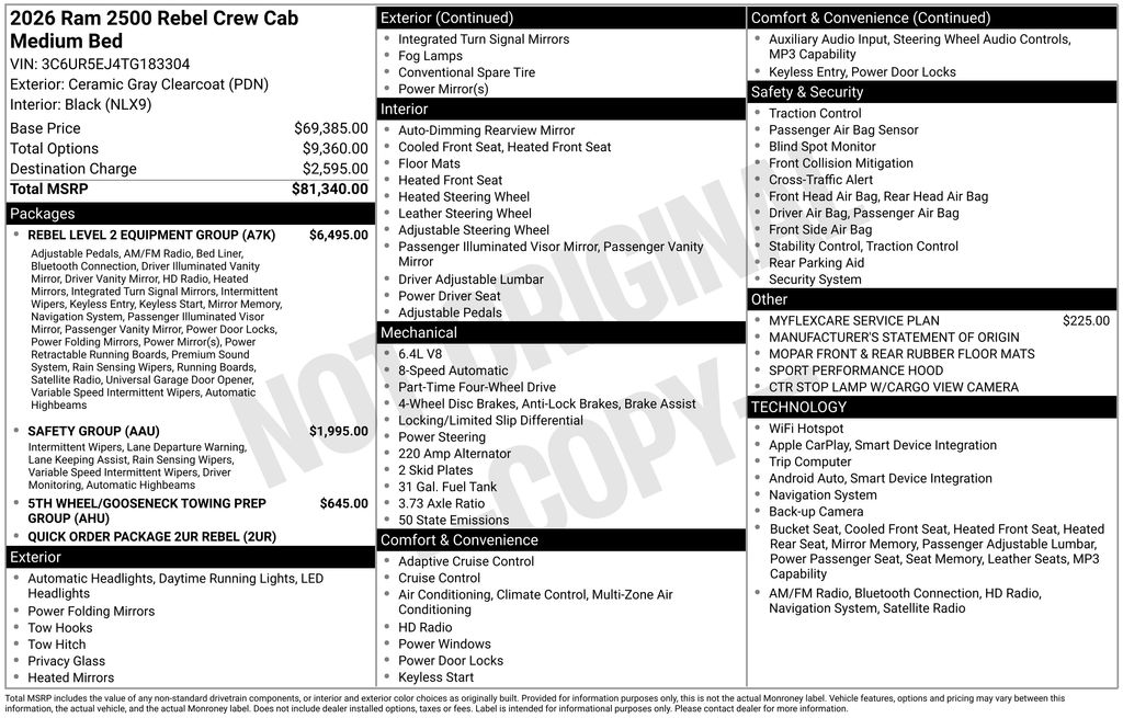 2026 Ram 2500 Rebel Ceramic Gray Clearcoat 6.4L V8 8-Speed Automatic 4WD