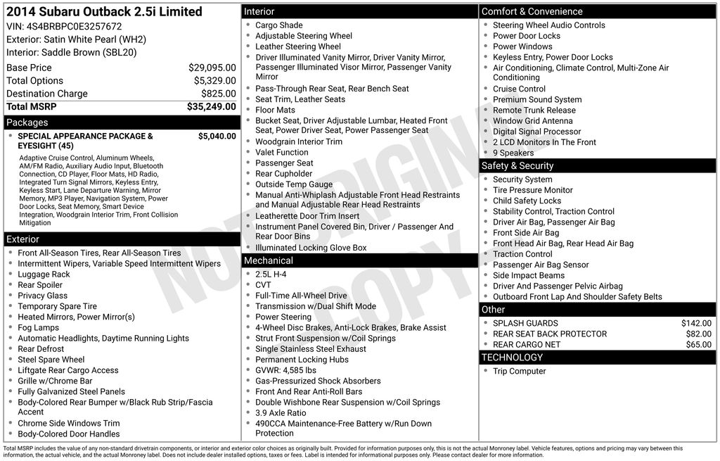 2014 Subaru Outback 2.5i Limited Satin White Pearl 2.5L 4-Cylinder DOHC 16V CVT Lineartronic AWD