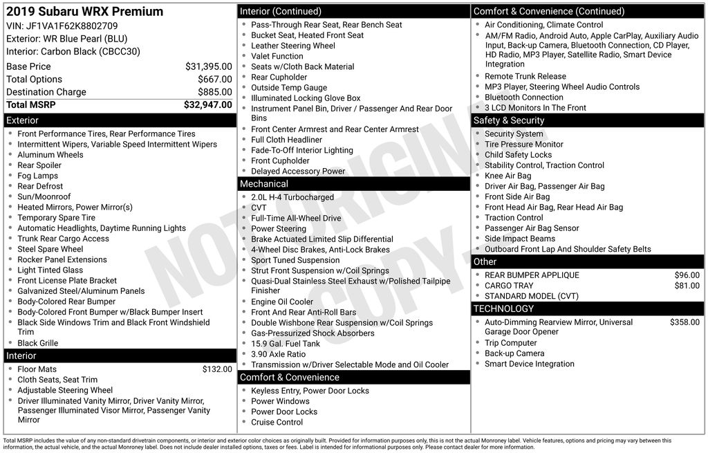 2019 Subaru WRX Premium CVT